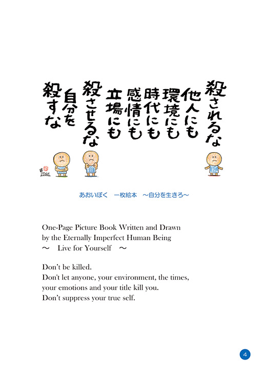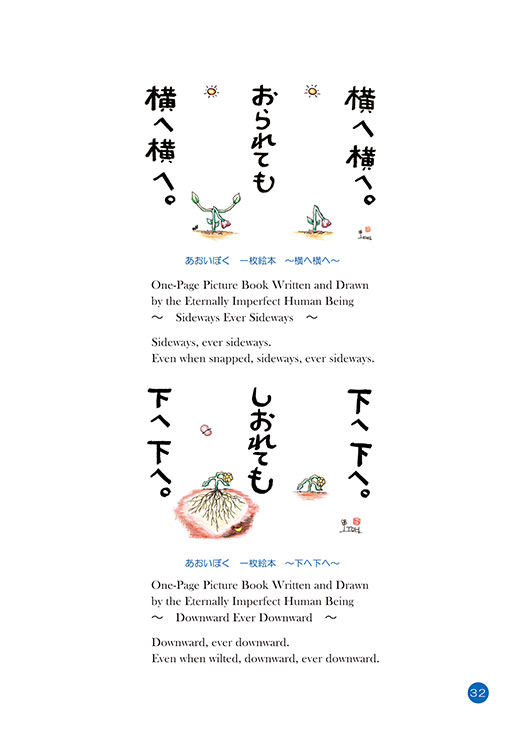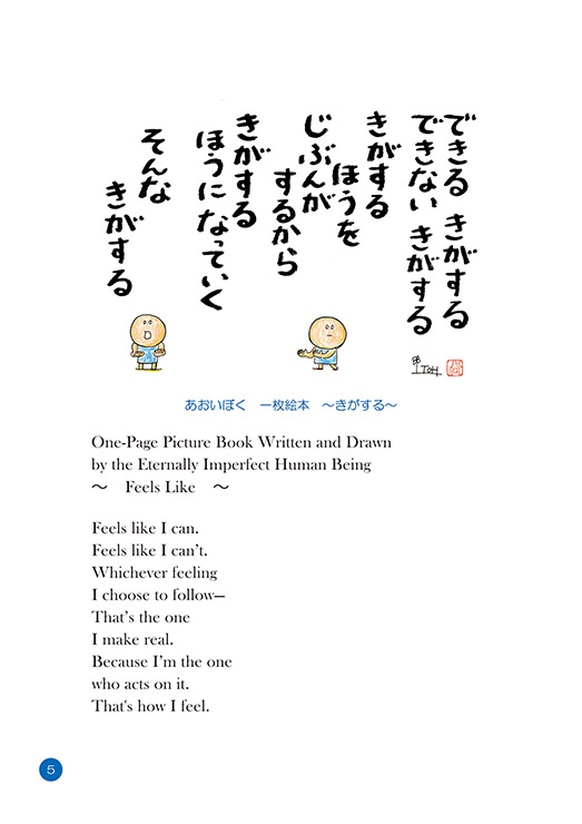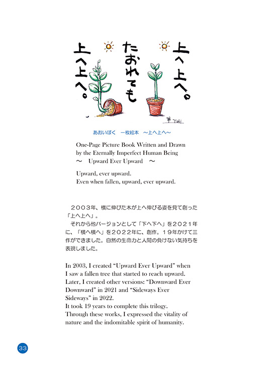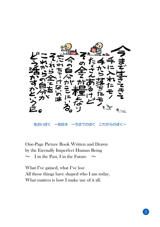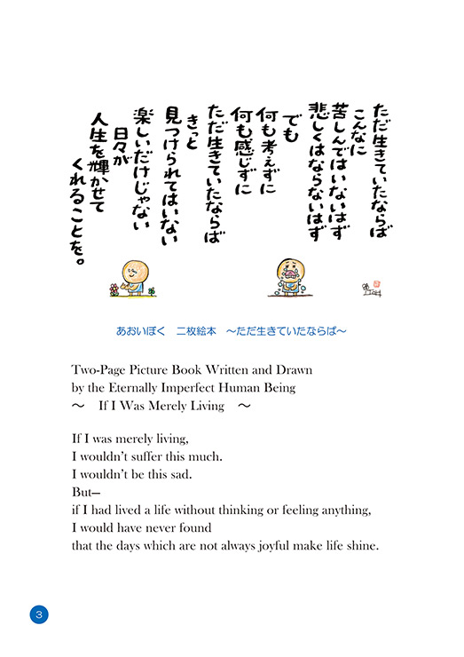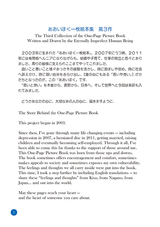 約10年前に発刊された「あおいぼく 第2作」が完売後も続く「絵本集はありませんか?」という声に応え、このたび新たに英訳を入れて「第3作」が発刊されました。