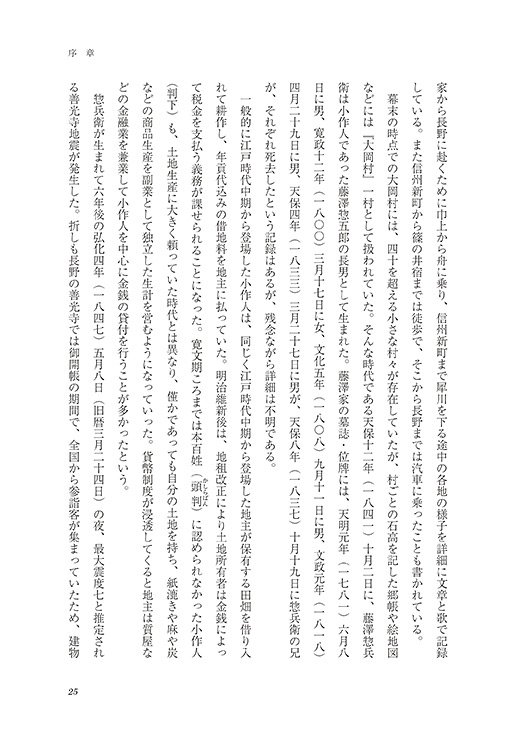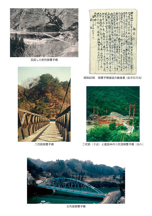 その昔、大岡の役場がある村の中心地から遠く離れた犀川沿いの村境で、小作農として生活していた藤澤家。墓誌や位牌に記録されている先祖の一番古いものは天明元年(1781)。けれど戸籍制度ができたのは明治になってからなので、確実に遡れる藤澤家最古の謄本では、惣五郎を父として、天保12年(1841)に生まれた惣兵衛からです。惣兵衛は小作農だけではなく、養蚕業・紙漉き・炭鉱の飯場と商売を広げ商店を設立します。やがて二代後の靖之が「初代御曹子橋」の設計に携わるのでした。