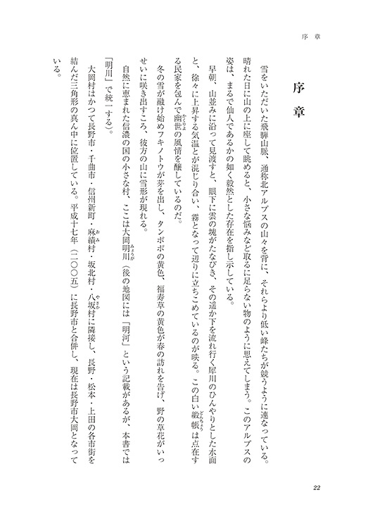 かつて犀川沿いにあった小さな山村・大岡村。大岡村は長野冬季オリンピックで一躍有名になった、あの巨大な「道祖神」の村でもあります。けれど平成の大合併で長野市に編入になり、現在「村」は無くなってしまいました。